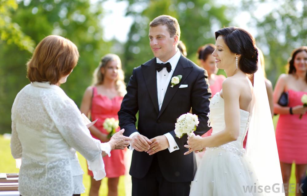 任命的大臣有权主持婚礼为了合法执业,主治人员必须从国家认可的组织获得执照。获得执照的要求可能因地区而异;在许多地方,牧师、法官,或者船长被授予结婚的权利,这是他或她的工作的一部分。有些地区允许一个人从当地官员那里获得临时的一天许可证来举行一场特定的婚礼,它允许未经圣职的朋友或亲戚应新人的要求举行仪式。一些在线组织和教堂也提供圣职,因此一个官方许可证,只需简单的申请和费用
