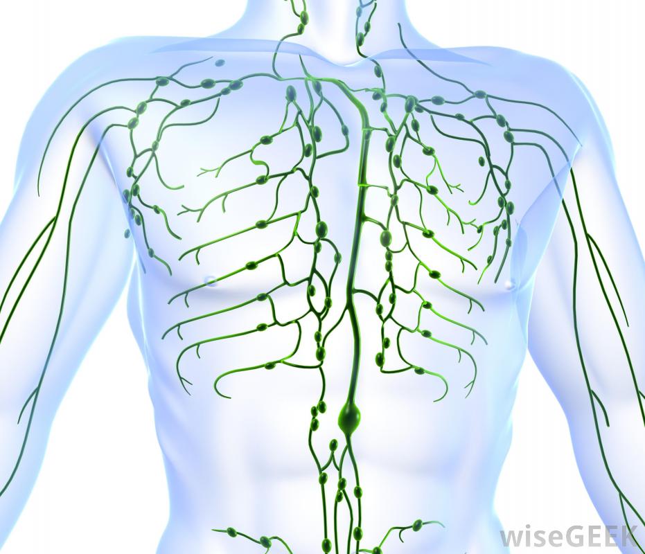 淋巴系统,以绿色显示。淋巴结清扫可切除该区域的全部或部分淋巴结。如果所有淋巴结都被切除,这种手术被称为根治性淋巴结清除术。当只切除部分淋巴结时,这种手术称为区域性淋巴结清扫。