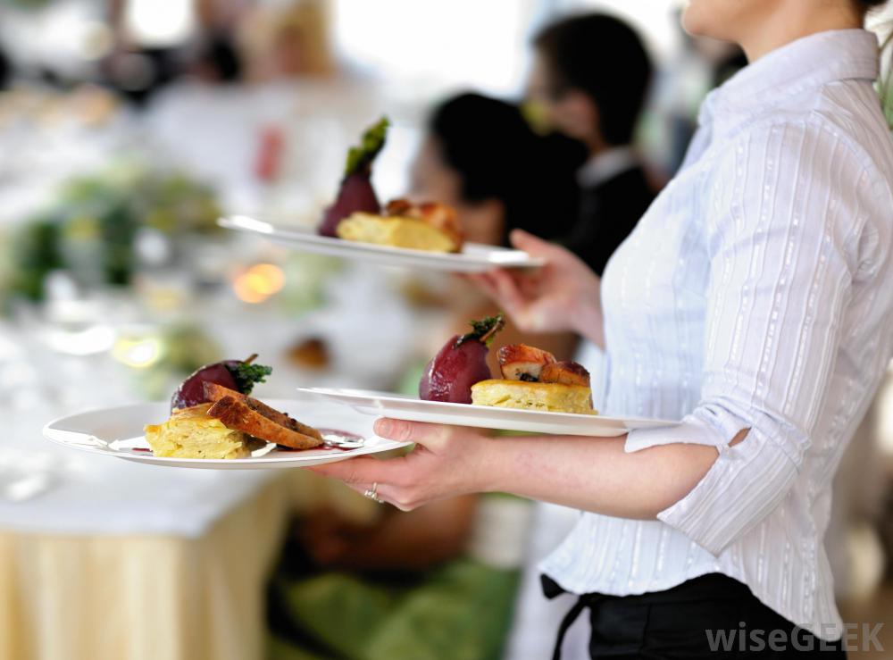 有些服务员在餐饮业工作,在特殊场合为人们服务。餐饮业的女服务员可能比其他类型的服务员少工作,或者,他们也可以在周末举办婚礼之类的餐饮服务来补充她们的正常工作。有些餐饮服务生在酒店的餐厅工作,在酒店有食宿安排。她们通常有工资加食宿
