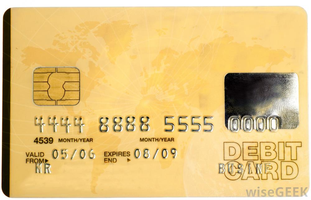 有些银行卡允许运营商不用现金进行购买。有些银行发行借记卡,银行卡,可用于在任何地方购买借记卡借记卡直接从用户帐户中借记资金,就像支票一样,只是它是即时的。要使用银行卡作为借记卡,必须输入个人身份号码。并非所有的企业都支持借记卡;他们接受此类卡的能力取决于他们与提供其信用卡和银行卡终端的公司签订的商户协议。