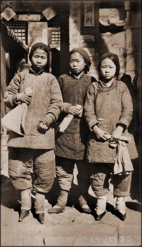 在大多数情况下,"缠足"一词描述的是中国古代将女孩的脚绑成尽可能小的做法。这种做法被认为起源于11世纪的某个时候,一直持续到20世纪,尽管经历过这一过程的女性至今仍活在今天。在大多数情况下,这种束缚是在女孩第三到第十个生日之间开始的。她的脚趾断了,向后绑到脚底,足弓被挤压成三角形。小脚被视为地位的象征,在许多情况下,这一点也起到了作用使一个女孩适婚。在许多地方,这也被认为表明了她和她的家人对儒家文化、性格和性别角色理想的献身精神。