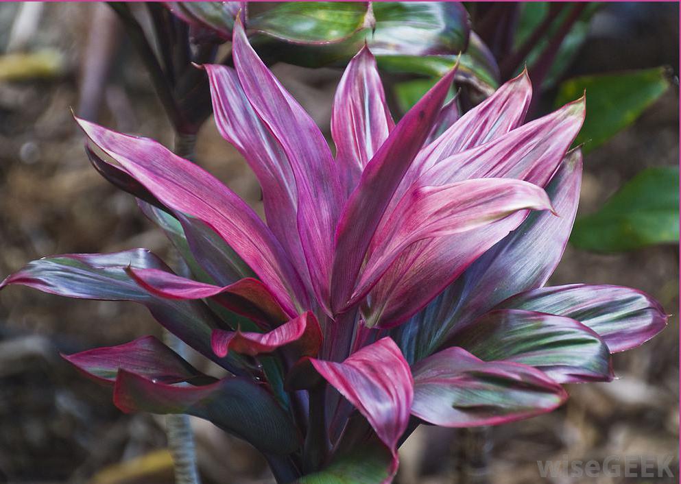 ti植物也被称为好运植物。夏威夷ti的叶子可以有多种颜色,主要是绿色和紫红色。叶子的表面通常是两种颜色的结合,可能包括米色、金色和红色条纹。开花时,芳香的花朵通常是红色或金色的,成熟的植物可能会结出不可食用的小浆果