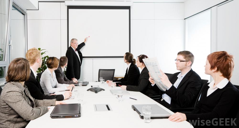 商务沟通演示可以在会议上进行。在大公司,通常有一名沟通主管负责管理内部和外部沟通。这有助于确保所有业务沟通演示文稿的信息保持一致。然而,在较小的公司,演示文稿可能由组织内多个不同级别的人员编写。一个演示文稿可能需要审批流程,根据项目的性质。