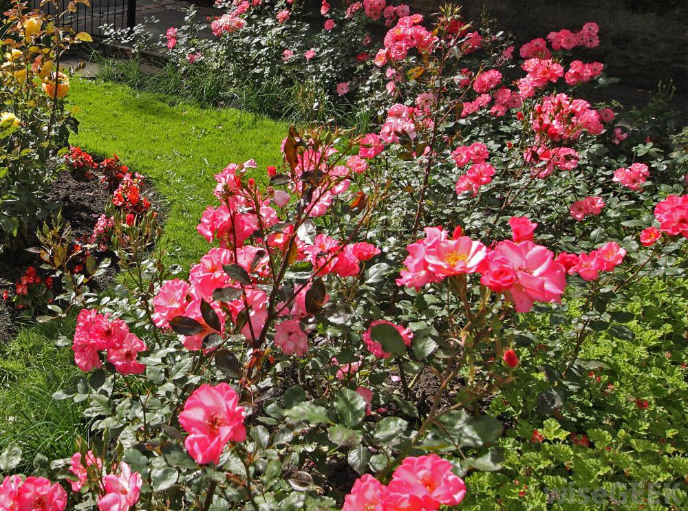 玫瑰可以在神圣的花园中找到。一种流行的神圣花园形式是禅宗花园。禅宗花园最显著的特点是简单。这种类型以"少即是多"为原则,少数自然元素成为象征。例如,一条流经景观的小石头通道代表水,岩石可能代表一座山。有些禅宗园林仅仅由一层沙子组成,一块或几块石头巧妙地放在上面沙子,经常被耙成代表流水的线条。