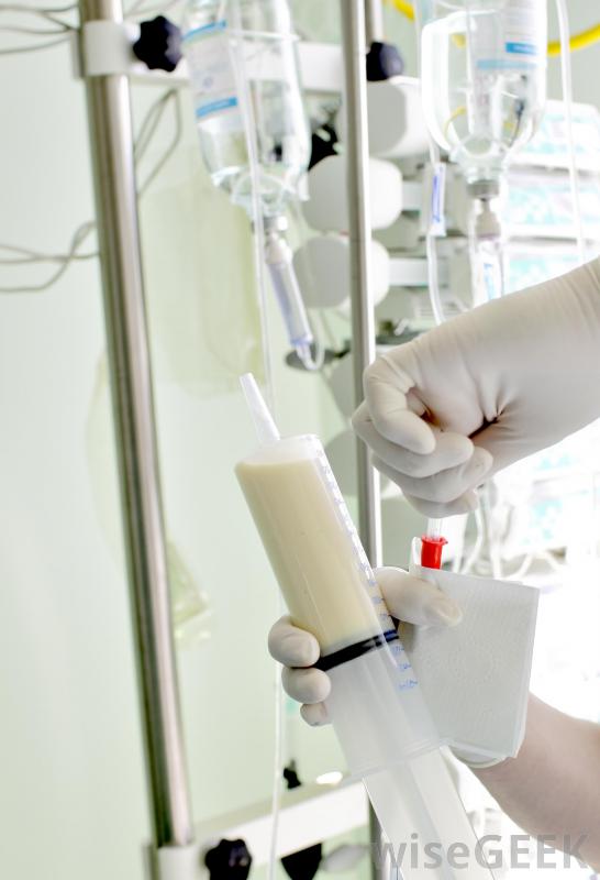 高营养指通过静脉输液管给患者喂食水和液体食品配方奶粉通常每天都要插入试管中。通常情况下,使用注射器将配方奶注入试管末端的插入区域有些病人可能会按照医生的指示接受液体药物的注射。那些使用PEG喂食管的病人在处理他们的管子时要小心,以避免并发症。该区域一般应保持胶布,除了使用液体时。一般情况下,每天应清洁一到两次管子和腹部周围区域。管子周围区域通常用肥皂水和棉签清洗,然后彻底冲洗和干燥。通常可以使用PEG管洗澡和淋浴鼻胃管喂食法通常用于神经性厌食症或严重口腔并发症的患者的短期使用。导管很容易插入鼻腔,患者通常只接受轻微的喂养麻醉。鼻胃管可能会引起咽喉刺激和轻微不适,但并发症一般较轻,因为这种方法每次使用的时间一般不会超过几个星期。药物和少量液体通常通过注射器注入注射管。如果需要连续给药,可以使用液体袋慢慢地将液体释放到注射管中。这可用于需要大量抗生素或患者严重脱水的情况。