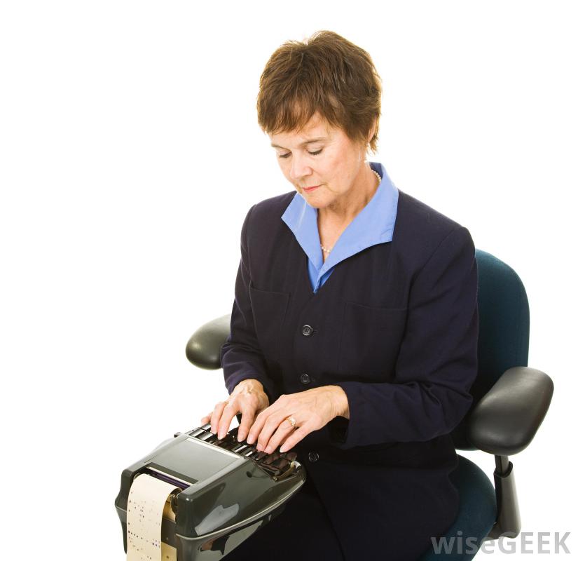 速记员负责记录法庭对话。法庭速记员在他们的行业中可以使用许多工具。历史上,他们用速记来生成一份手动的笔录,在诉讼程序结束后经过它把速记扩展成任何人都能阅读的笔录。今天的法庭速记员可以使用速记机,一种特殊的设备,可以让速记员输入速记,生成一个病例的记录,以后可以扩展成成绩单。有些机器会自动转录,生成每次击键的实时磁带和转录本,速记员稍后会检查这些记录的准确性
