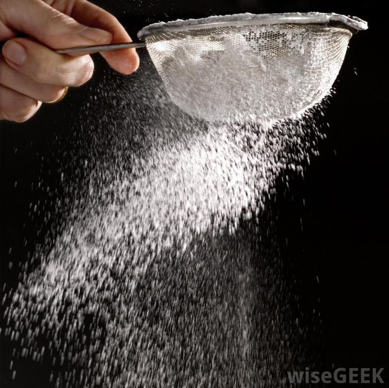 一个人在筛面粉。当一个地方有面粉蛾出没时,通常首先会注意到幼虫。雌蛾在谷物中或附近产卵多达300个,幼虫孵化时可以吃这些卵,它们很快在这些产品中定居。成熟的幼虫吐茧,在完美的生活条件下,大约6到8周后会变成成虫。这些蛾子只能存活大约一周。