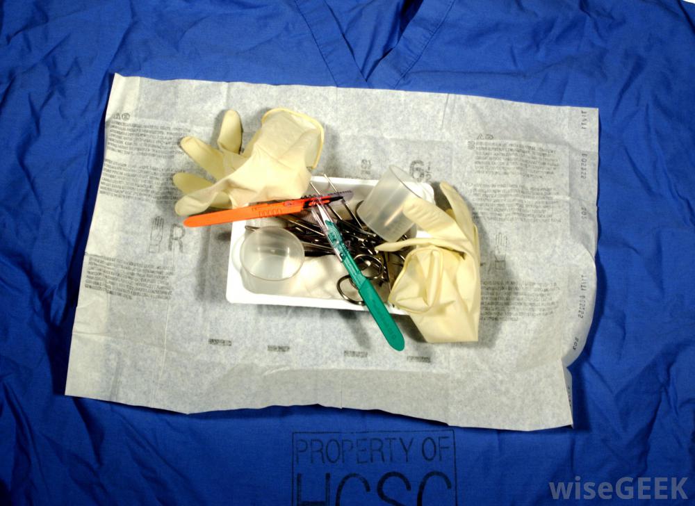 医疗专业人员通常需要几件无菌的设备和材料来缝合伤口,包括特殊的针头。带有缝合材料的针头穿过伤口一侧的上两层皮肤,然后从伤口底部取出,然后穿过真皮穿过伤口另一侧的表皮。然后缝合线打结以帮助伤口闭合。