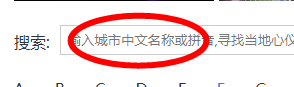 3.进入后,下拉网页,可以通过搜索找到所在城市,或者通过查询首字母找到所在城市。