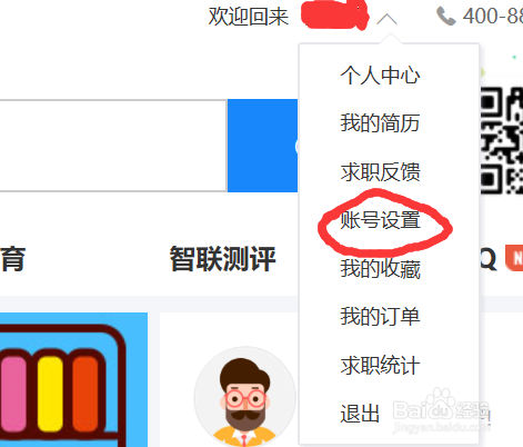 首先,百度智联招聘登陆,在首页里右上方有个欢迎回来+名字