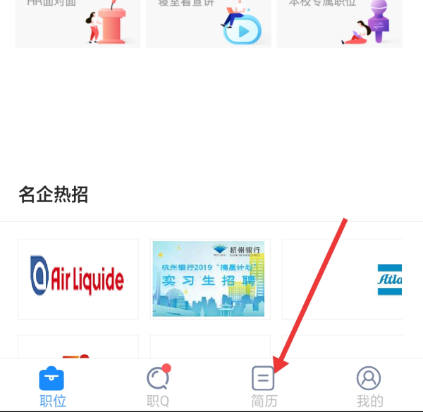 1、打开智联招聘手机app,点击页面下方的“简历”。