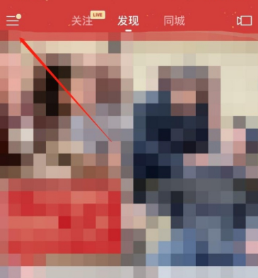 一、进入快手后,点击页面左上角的三条横线,如图所示
