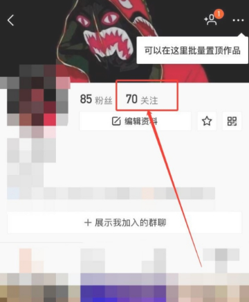 三、这时候在我们的头像旁边可以看到自己的粉丝以及自己所关注的人,点击“关注”,如图