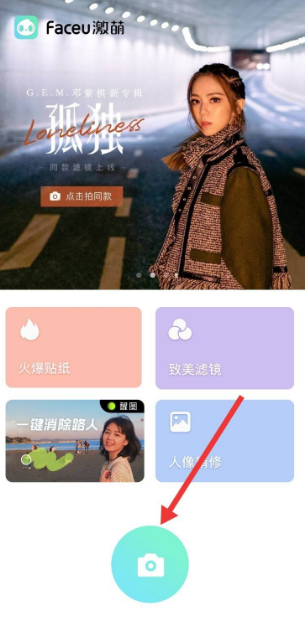 进入Faceu激萌后,点击底部的拍摄按钮。