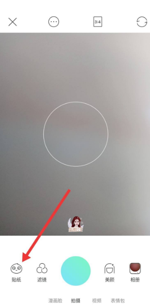 点击后,进入以下界面,点击左下角的【贴纸】。