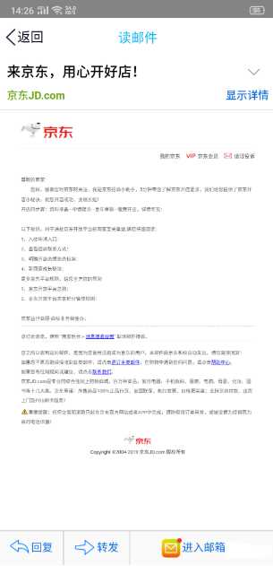 6.我们会收到京东的意向反馈,根据要求,进入链接,完成店铺的资料填写,通过京东的审核后,缴纳保金就可以啦。