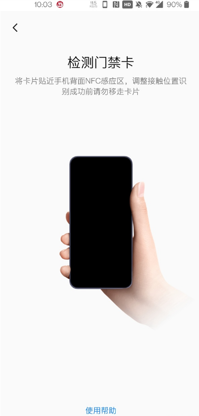 3、将实体门禁卡贴近手机背面,根据提示完成录入即可。
