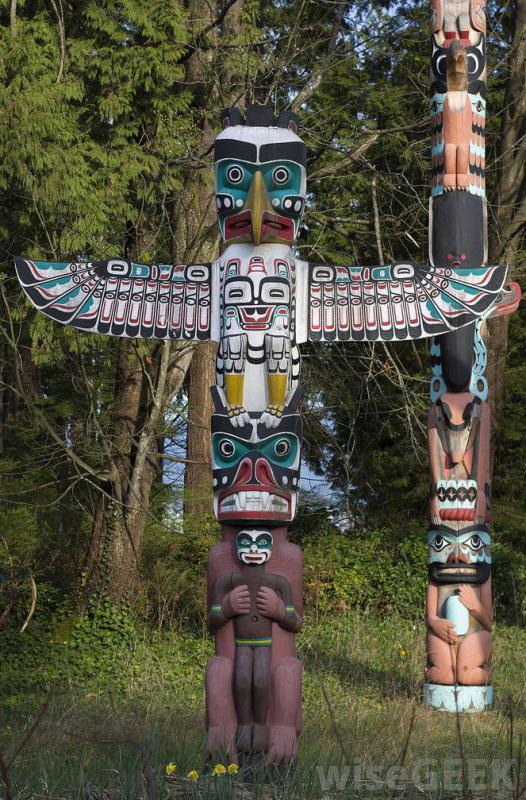图腾柱被雕刻出来,这些图腾柱与西北太平洋的印第安人有关显示象征性人物的柱子。许多部落都有自己的图腾柱版本。在许多部落中,特定的图案属于特定的家族,图腾柱是家族的徽章。图腾柱也可以用来讲述故事,用神话中的人物描绘,或者提供特定地点的信息。图腾柱可能会标记房屋、坟墓、入口通道和其他感兴趣的地点。它们不是宗教标志,与一些早期到西北的游客的看法相反,虽然它们可能包含神话或宗教元素,但图腾柱上元素的排列也不一定是地位的标志,有些文化把高级人物放在底部,而其他人则坚持中间或顶部。